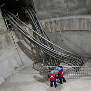 工作人员在电缆隧道内巡检。新华社记者刘艺淳 摄