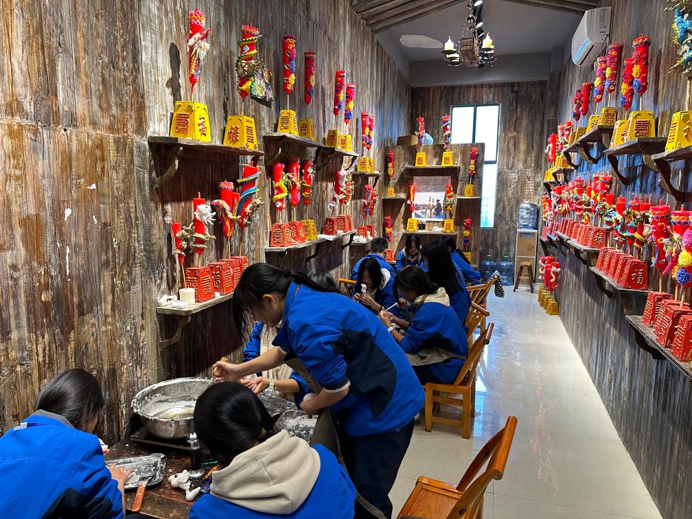 秀山职业教育中心的学生正在制作龙凤花烛。新华社记者刘梓桐 摄