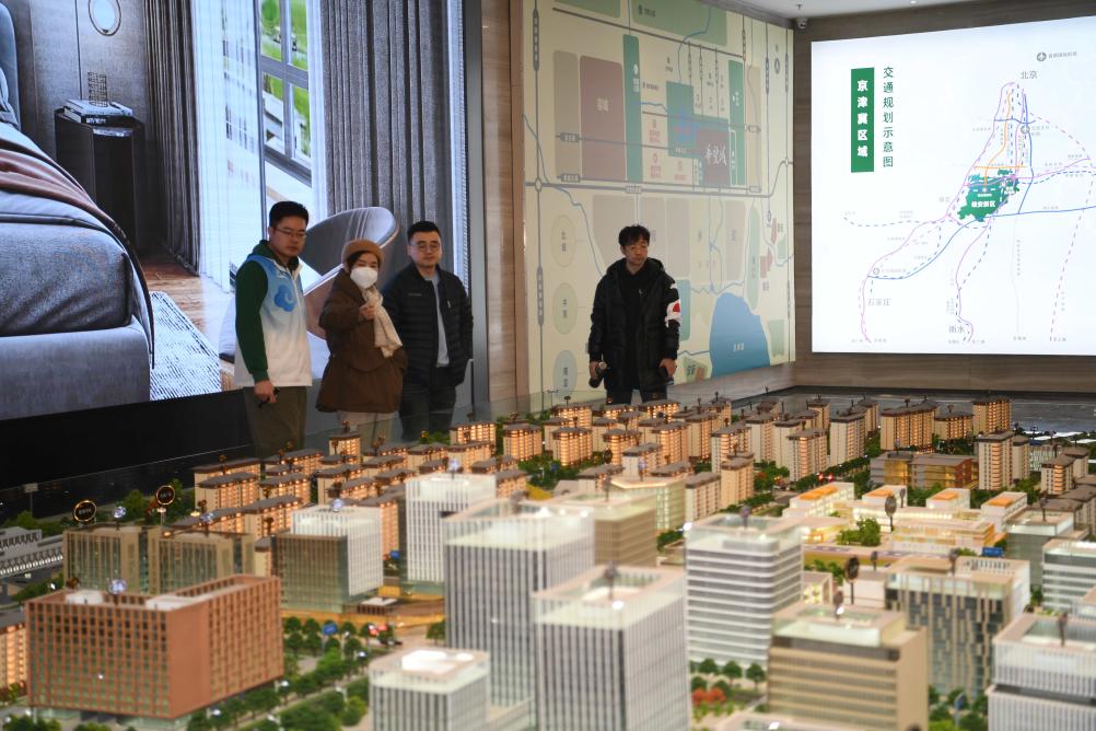 购房者在河北雄安新区某项目售楼部查看沙盘(2月25日摄)。新华社记者 朱旭东 摄
