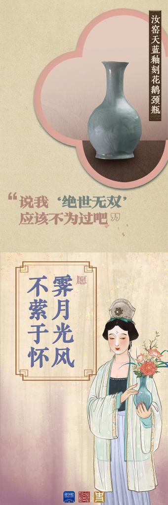 汝窑天蓝釉刻花鹅颈瓶