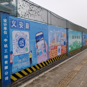 义乌市一在建工地围挡上粘贴的“义安薪”劳资纠纷维权码。(义乌市人社局供图)