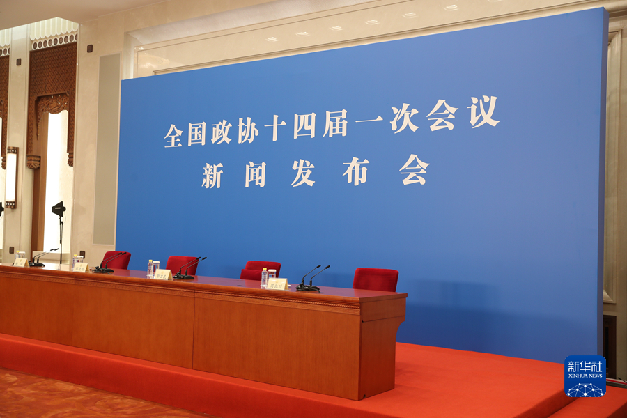 3月3日,全国政协十四届一次会议新闻发布会在北京举行,大会新闻发言人郭卫民向中外媒体介绍本次大会有关情况并回答记者提问。图为人民大会堂新闻发布厅现场。新华网记者 焦鹏 摄