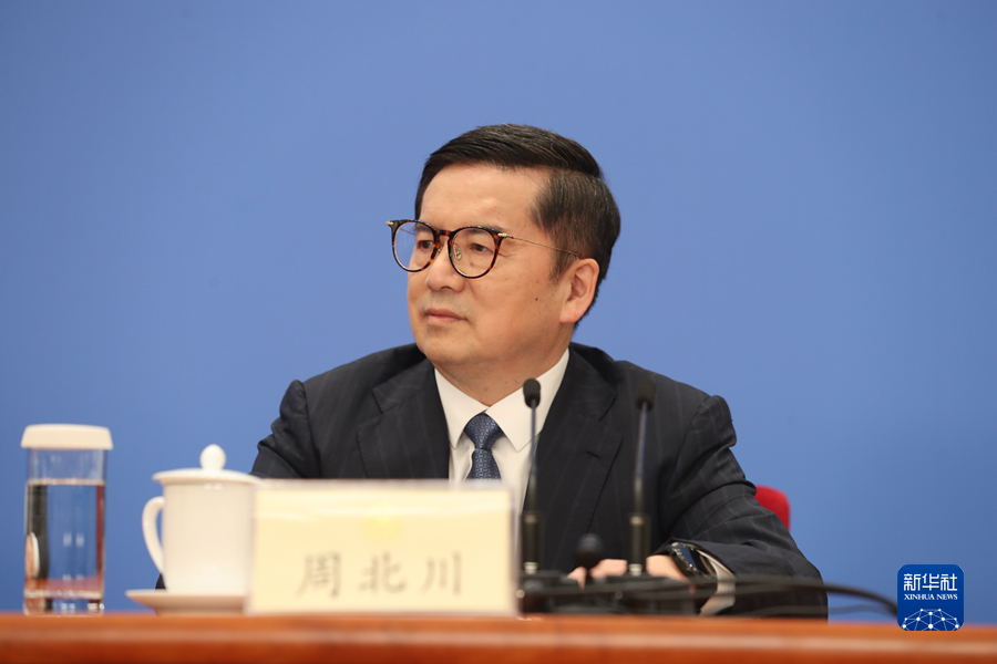 3月3日,全国政协十四届一次会议新闻发布会在北京举行,大会新闻发言人郭卫民向中外媒体介绍本次大会有关情况并回答记者提问。图为两会新闻报道组副组长、全国政协办公厅新闻局局长周北川。新华网记者 焦鹏 摄