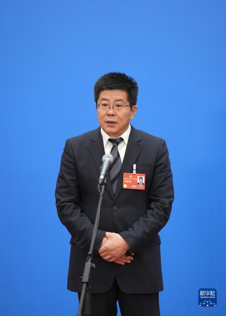 3月4日,全国政协十四届一次会议首场“委员通道”集体采访活动在北京人民大会堂新闻发布厅举行。这是全国政协委员顾学明接受媒体采访。