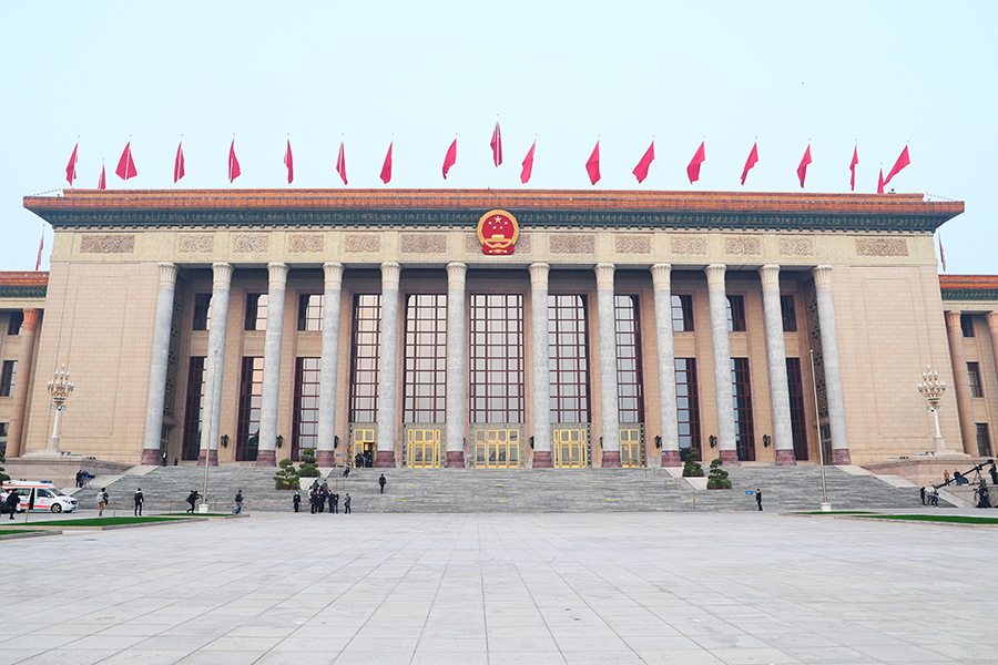 3月5日(星期日)上午9时,第十四届全国人民代表大会第一次会议在人民大会堂举行开幕会。图为人民大会堂外景。(新华网记者 焦鹏 摄)