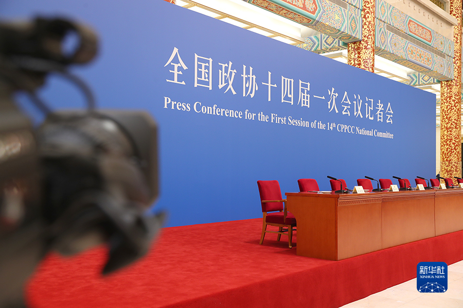 3月5日下午3时,全国政协十四届一次会议在人民大会堂三楼金色大厅举行民主党派中央和全国工商联领导人记者会,请各民主党派中央主席和全国工商联主席出席并回答记者提问。图为记者会现场。新华网记者 焦鹏 摄