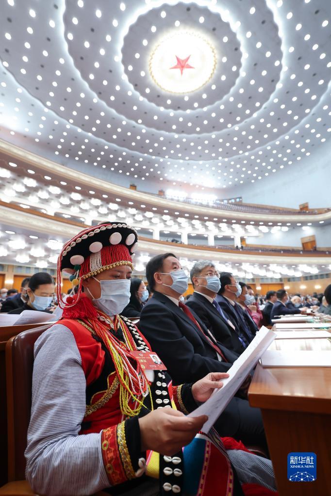 3月7日,全国政协十四届一次会议在北京人民大会堂举行第二次全体会议。这是委员们在认真听会。