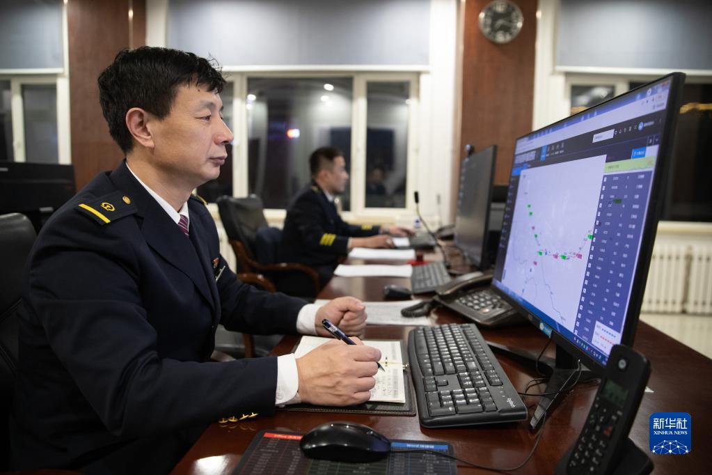 邢云堂在中国铁路哈尔滨局集团有限公司三棵树机务段动车运用车间应急指导中心值班(2月18日摄)。