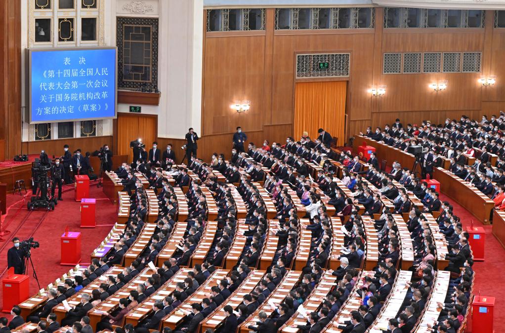 3月10日,十四届全国人大一次会议在北京人民大会堂举行第三次全体会议。