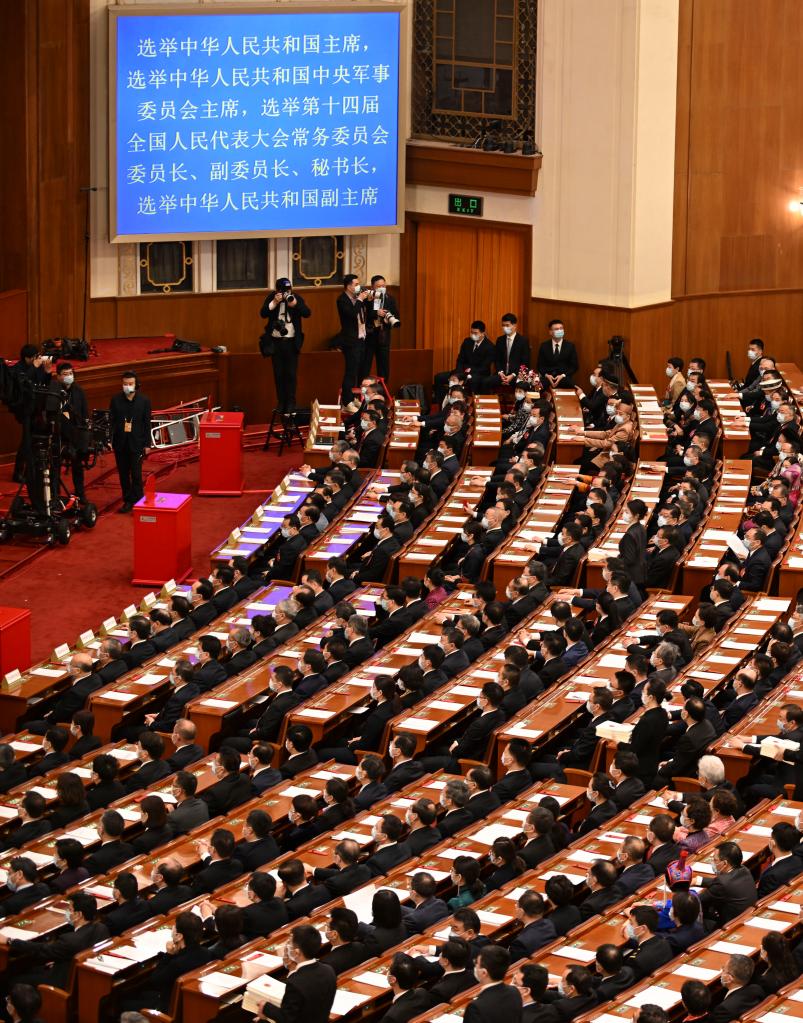 3月10日,十四届全国人大一次会议在北京人民大会堂举行第三次全体会议。