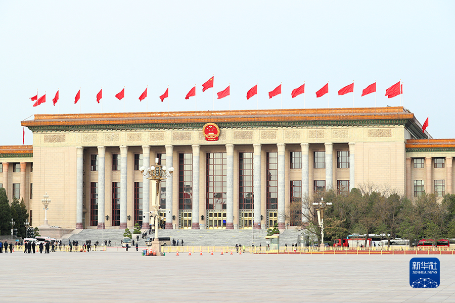 3月11日上午9时,十四届全国人大一次会议在人民大会堂举行第四次全体会议。图为人民大会堂外景。 新华网记者 焦鹏 摄