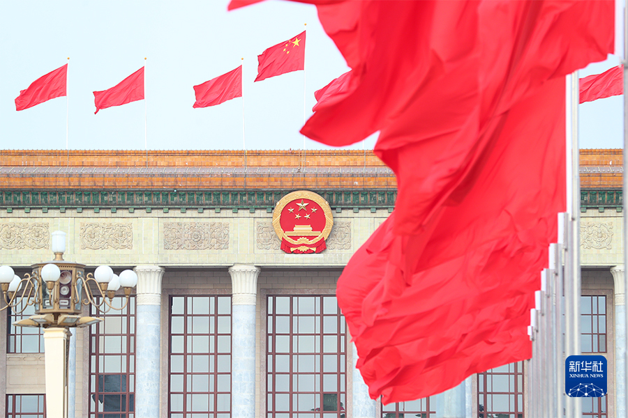 3月11日上午9时,十四届全国人大一次会议在人民大会堂举行第四次全体会议。图为人民大会堂外景。 新华网记者 焦鹏 摄
