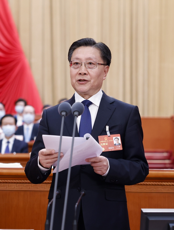 3月11日,十四届全国人大一次会议在北京人民大会堂举行第四次全体会议。王东明主持会议。
