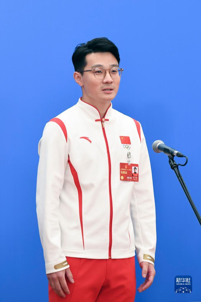 3月12日,第十四届全国人民代表大会第一次会议举行第三场“代表通道”采访活动。这是全国人大代表任子威接受媒体采访。