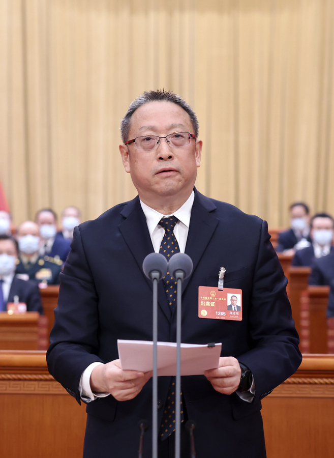 3月12日,十四届全国人大一次会议在北京人民大会堂举行第五次全体会议。郑建邦主持会议。