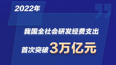 2月24日,在国新办举行的“权威部门话开局”系列主题新闻发布会上,科技部部长王志刚介绍,2022年全社会研发经费支出首次突破3万亿元,研发投入强度首次突破2.5%,基础研究投入比重连续4年超过6%。