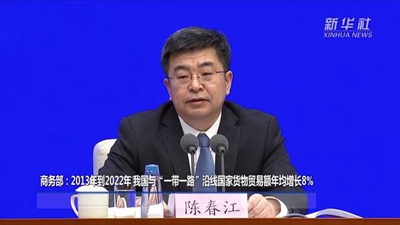 商务部部长助理陈春江2日在国新办新闻发布会上说,2013年到2022年,我国与“一带一路”沿线国家货物贸易额从1.04万亿美元扩大到2.07万亿美元,年均增长8%。