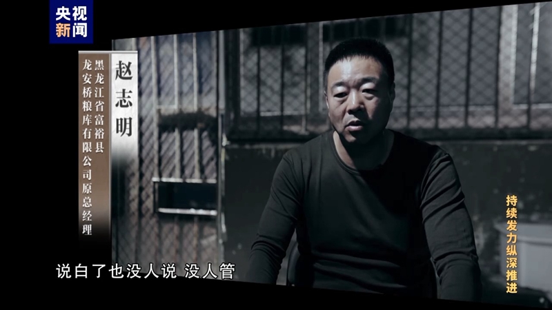 赵志明曾是黑龙江省齐齐哈尔市富裕县龙安桥粮库总经理,经查,他贪污粮库公款2400万余元,挪用公款1400万余元,2023年3月被判处有期徒刑14年。龙安桥粮库是在2015年由5家国有粮库改革重组的,富裕县政府持股51%、民营企业鼎仓公司持股49%。赵志明原本是鼎仓公司的老板,在这次改制中当上了龙安桥粮库总经理。