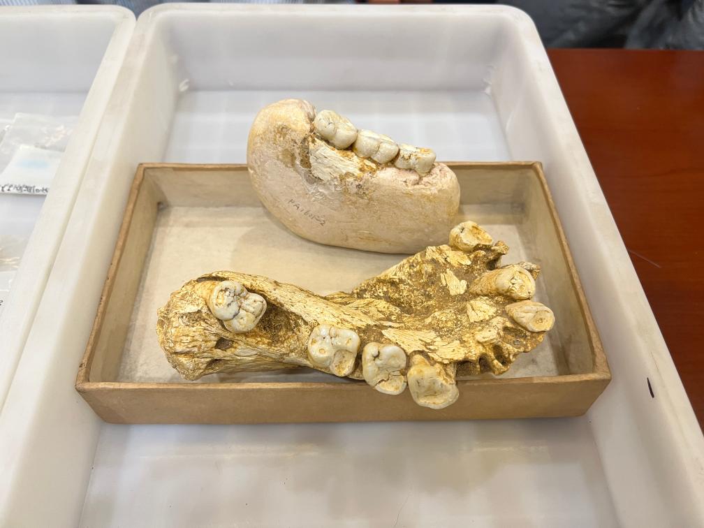 步氏巨猿巨大的下颌化石。新华社记者温竞华 摄