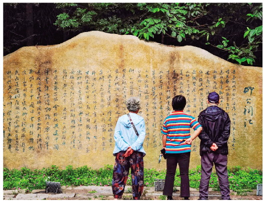 ▲在纪念柳敬亭而建的柳园,游客品读《柳公祠记》。本报记者朱旭东摄