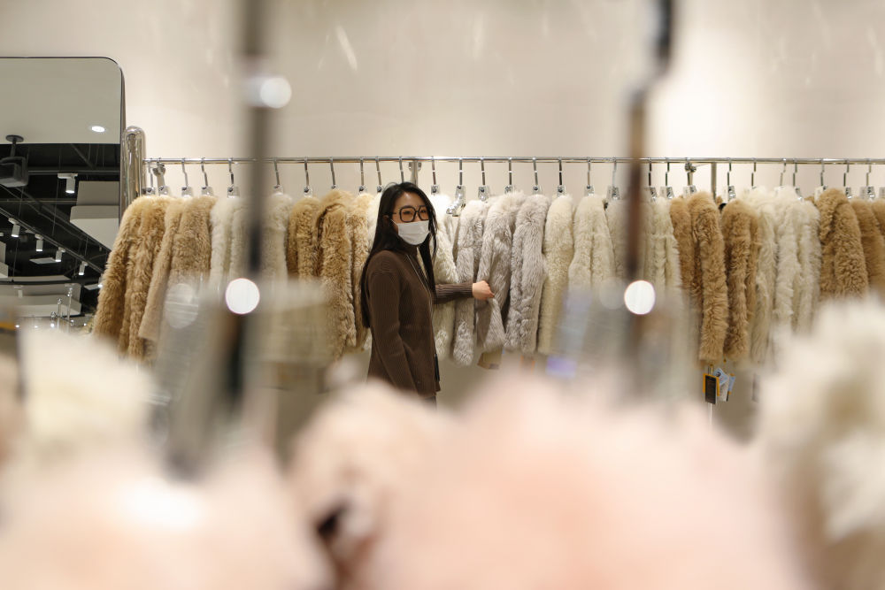 在辽宁省灯塔市佟二堡镇的一处购物商场,顾客在挑选皮草服饰(2023年12月20日摄)。新华社记者 陈为 摄
