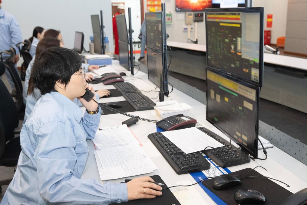 在中石化江汉盐化工湖北有限公司中控室,工作人员对设备运行状况进行监控。新华社记者肖艺九摄
