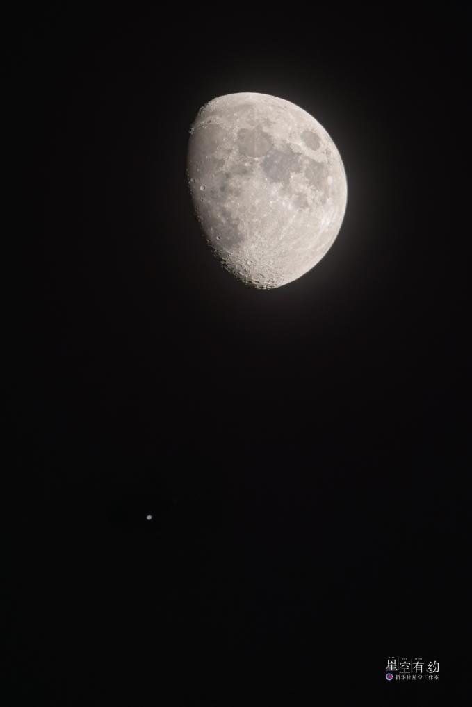 天津星空摄影爱好者刘庆2023年12月22日在天津西青区拍摄的木星伴月。(本人供图)