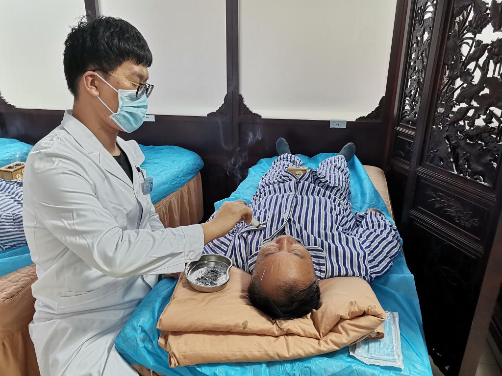 在湖南中医药大学第一附属医院,医生在为患者做针灸治疗。新华社记者 田晓航 摄