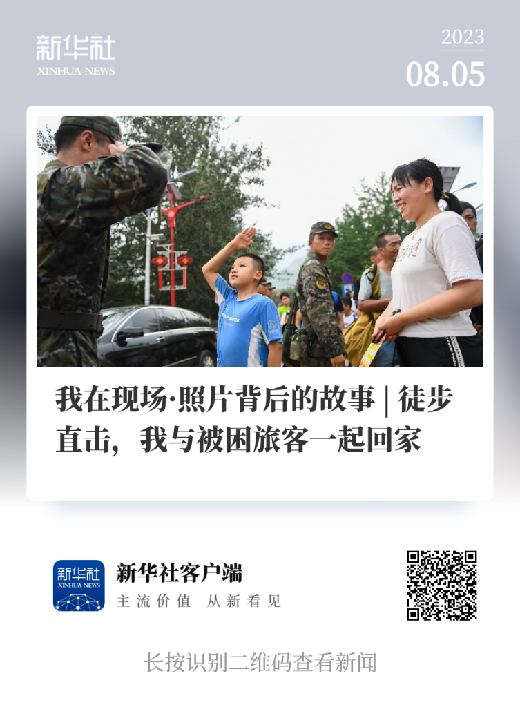 2023年8月2日12时,我与两名同事跟随武警北京总队机动第三支队、北京消防救援部门、门头沟中医院等单位组成的应急救援队伍,从门头沟区斜河涧火车站出发,急行14公里山路,挺进Z180次列车旅客滞留地安家庄村进行采访拍摄。