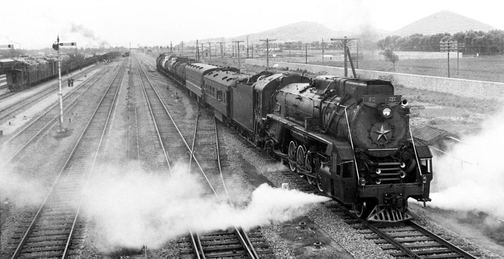 ↑1957年12月,我国自制的“和平”型蒸汽机车在行驶中。新华社发(徐枫摄)