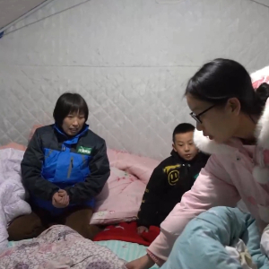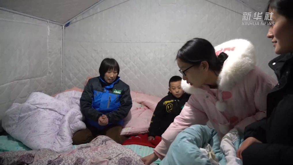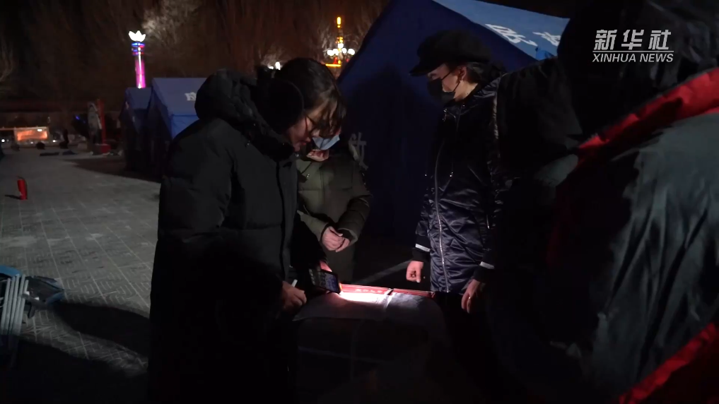 在阿合奇县城的广场上,整齐排列的蓝色帐篷被灯光照亮,部分受灾群众被转移安置到了这里,行军床、被褥等物资已到位。社区干部正为每顶帐篷分发采暖设备,让受灾群众温暖、安稳度过夜晚。当地电力公司组织的11辆应急电源车,在为安置点帐篷提供用电保障。