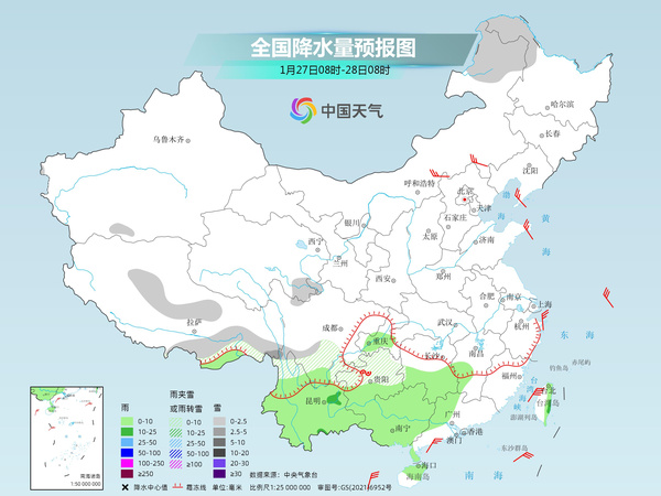 气象专家提醒,春运首日,我国降水不多,主要出现在西南一带,贵州西部、云南东部局地可能出现冻雨。不过,随着降水逐渐向东扩展,南方新一轮大范围降水过程即将上线。展望后期,29日江南、华南降雨将明显增多增强,31日前后北方降雪也将增多。春运期间探亲旅游出行集中,建议公众关注临近预报,合理安排出行计划,注意交通安全。