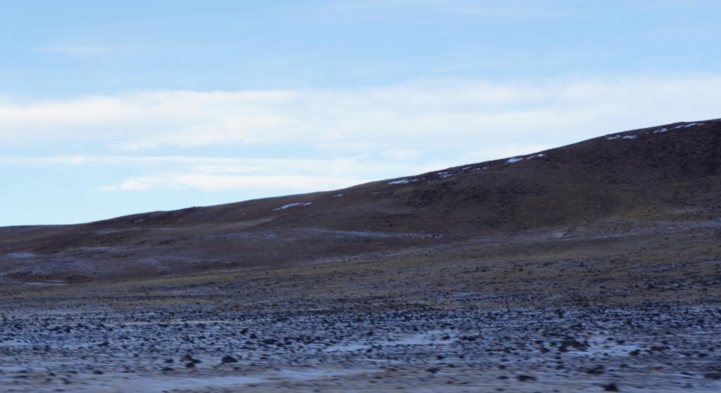 卓乃湖又被称为“藏羚羊大产房”,平均海拔达4800米。夏天时,会有成群的母藏羚羊跨越千里来此产仔。而现在,这里没有了夏天的热闹场景,湖面结上一层厚厚的冰,周围一切空寂冷清。下车来到湖边,凛冽朔风扑面而来,我们的脸色冻得发青,眼泪瞬间钻出眼眶。