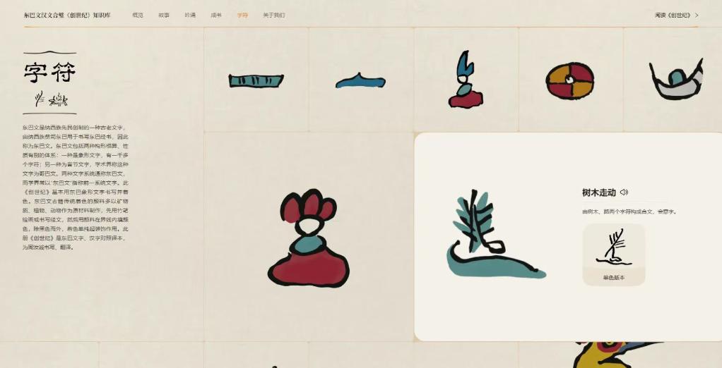 东巴文汉文合璧《创世纪》知识库的东巴文字符文字墙页面展示(图片由国家图书馆提供)