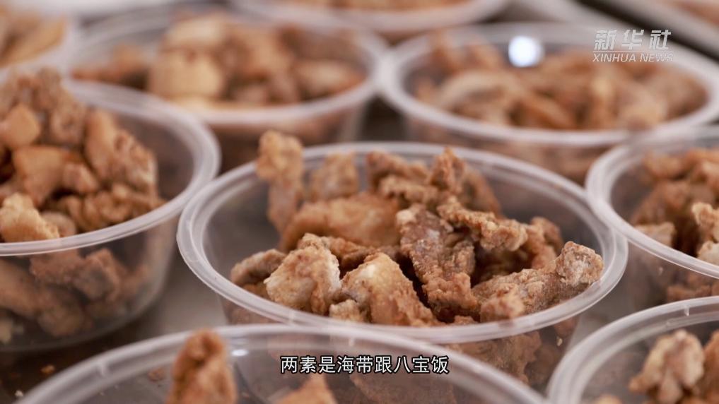 八大碗制作师傅徐利伟介绍,经过改良,现在八大碗有六荤两素,六荤是排骨、丸子、酥肉、黄焖鸡块、腐乳肉、水汆丸,两素是海带和八宝饭,食材更加丰富,年味更足。