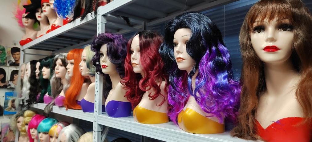 安信假发厂展厅内五颜六色的时尚假发。新华社记者李美娟 摄