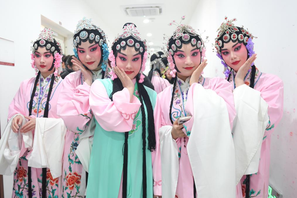 楚剧演员们在登台演出前合影。新华社记者 杜子璇 摄