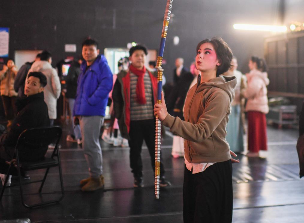 隆冬岁末,华灯初上,位于武汉的湖北戏曲艺术中心灯光璀璨,繁忙依旧。剧场后台的数十间化妆室里,一群“00后”戏曲演员们正涂抹油彩、佩戴钗环、开嗓练声,等待着精彩亮相。