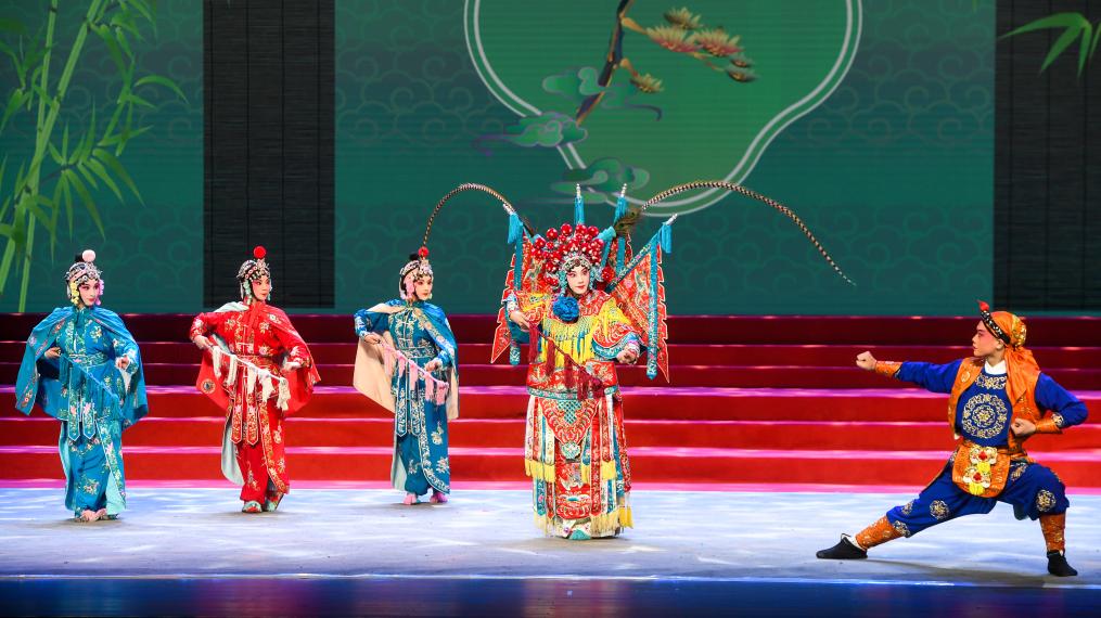 青年演员们在表演汉剧《探谷》。新华社记者 杜子璇 摄