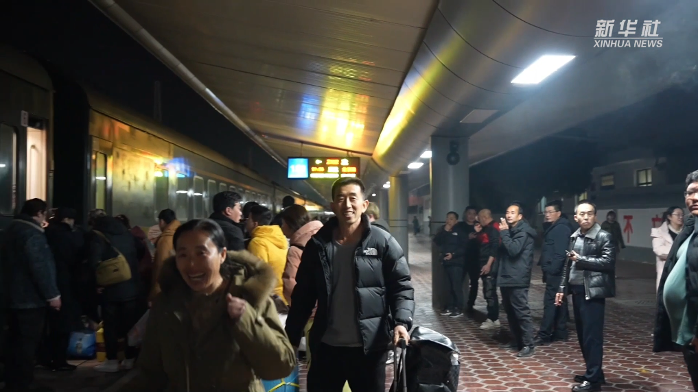 1月29日夜晚,在甘肃省天水火车站,中国铁路兰州局集团有限公司职工王靓怡的父母跨越2700公里、历时52个多小时,从黑龙江省齐齐哈尔市泰来县“逆向”奔赴至甘肃省天水市,陪伴刚参加工作、因春运值班无法返乡的女儿,共度春节。