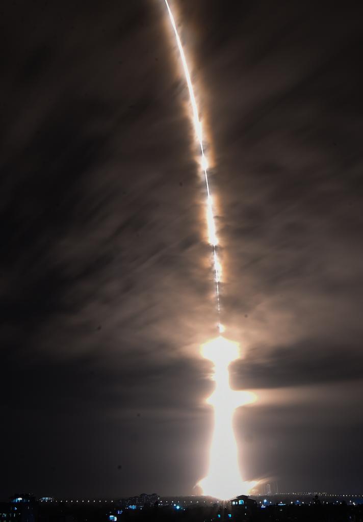 我按下快门,直至相机的焦段已不足以记录。抬眼望去,夜晚的“太阳”化作灿黄色的一团火焰奔向缥缈的云霄。尾焰逐渐消失,它变为一道流光,最终化作一颗星,去达浩瀚无垠之界。