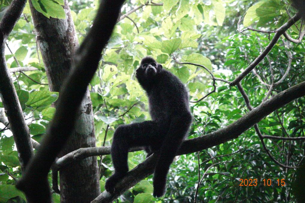 这是2023年10月15日在海南热带雨林国家公园霸王岭片区拍摄的海南长臂猿。新华社发(李文永 摄)