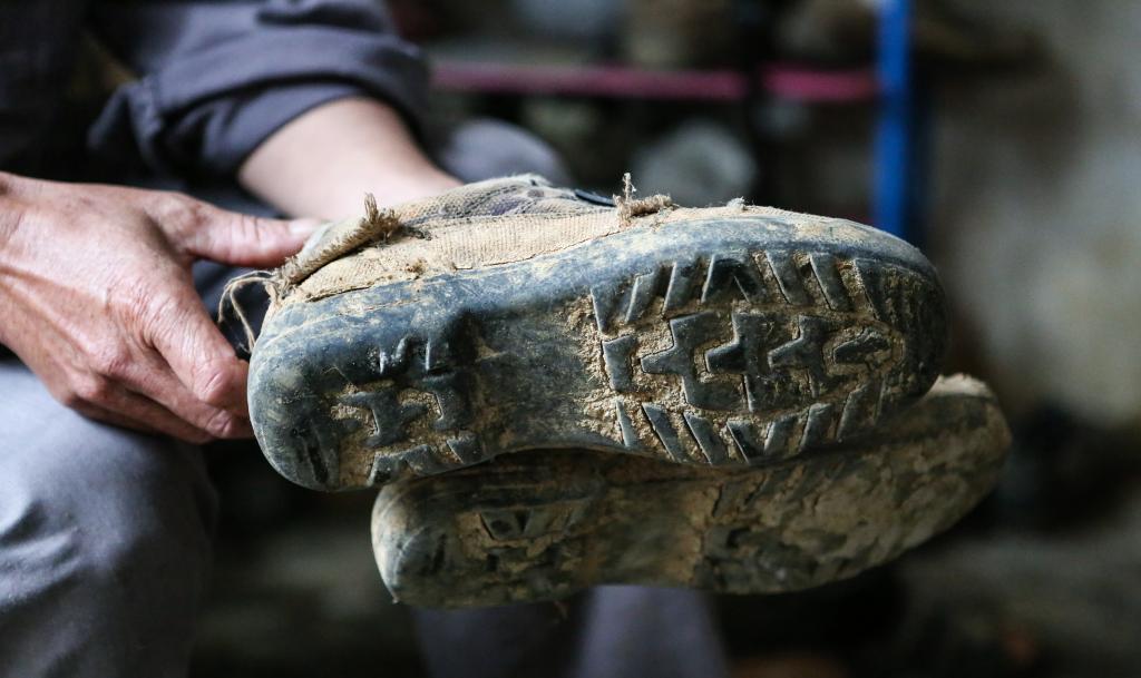 2023年10月18日,李文永展示一双因长期上山而穿烂的鞋。