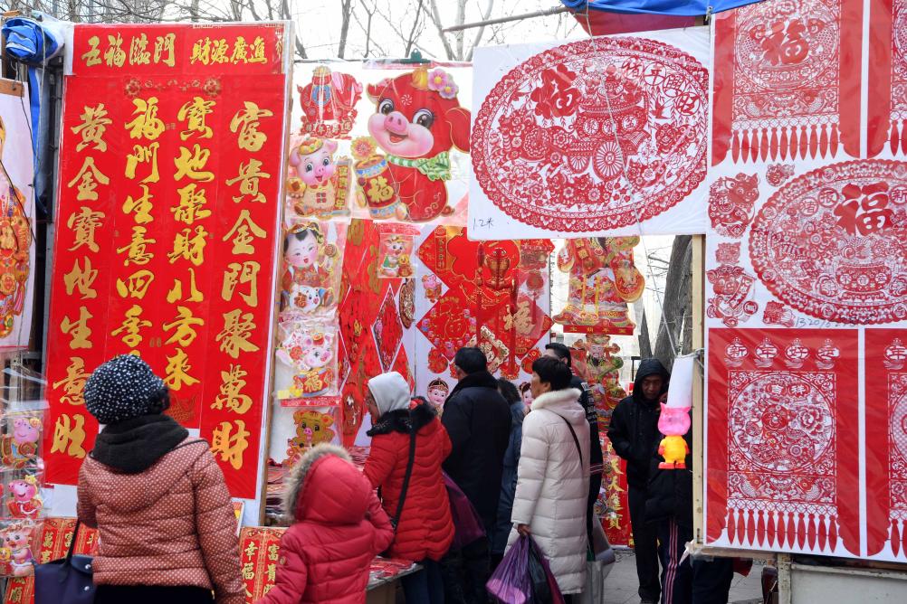 2019年2月1日,市民在天津古文化街选购新年饰品。