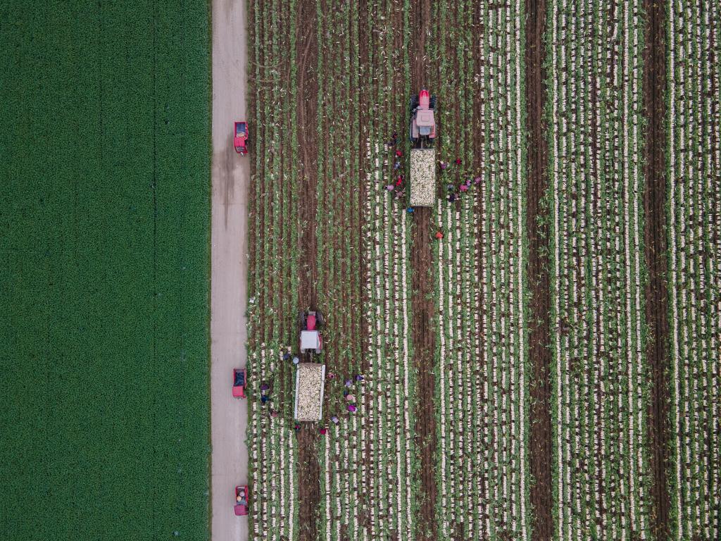 天光渐暗,远处劳作的村民喊叔叔嬢嬢们一起将收获的白萝卜装车。他们应和着小跑过去,回头指了指刚拔出来的白萝卜,让我一定带点回家。那天的夕阳被薄雾拦截,“红围裙”们的背影却美丽耀眼。短短几十分钟的相处,我深深感受到他们性格里的热情与豁达,用行动过好日子的态度令我动容。