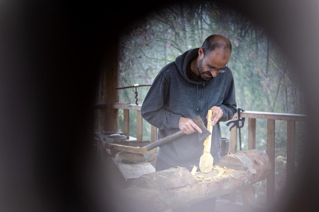 16年前,为学习和研究漆艺,文森从法国来到中国,在城口县北屏乡松柏村定居,在漆树林边生活和创作。