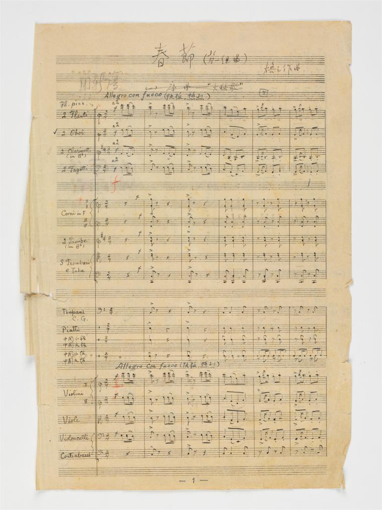 1955年李焕之《春节组曲》手稿第一页。李大康供图