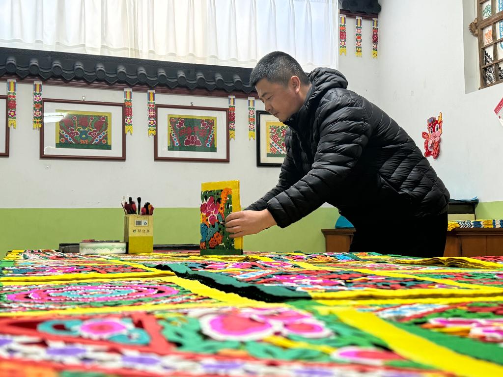 龙年春节脚步临近,刘胜余父子俩花费近10个月制作的春叶和遮面迎来销售季。在春节前张贴春叶和遮面是甘肃省定西市通渭县的独特民俗,春叶和遮面也是当地必不可少的年货之一。