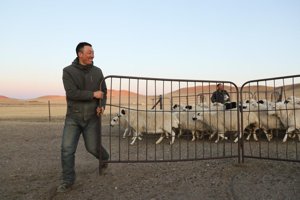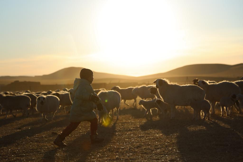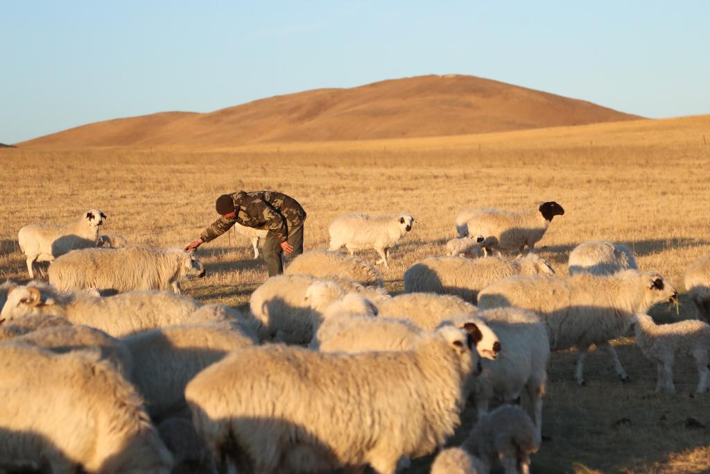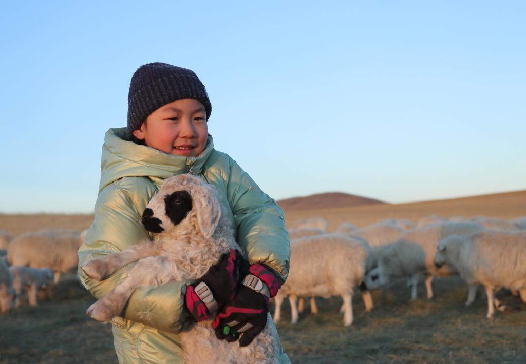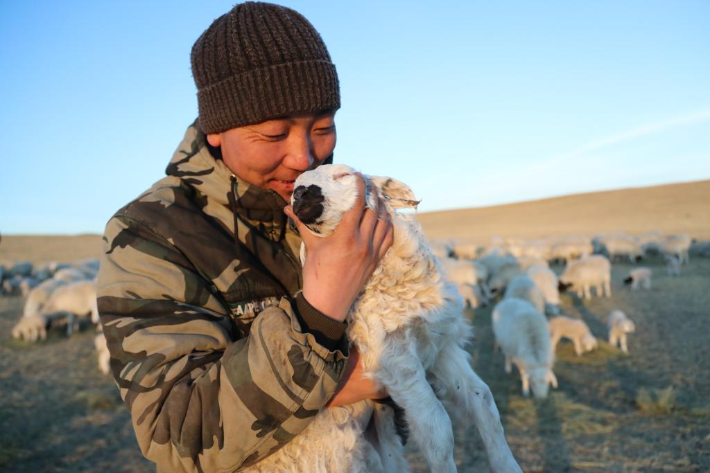 春日暖阳下,朝克一家漫步在羊群中,人与自然和谐共生的“春日牧歌”在此奏响。