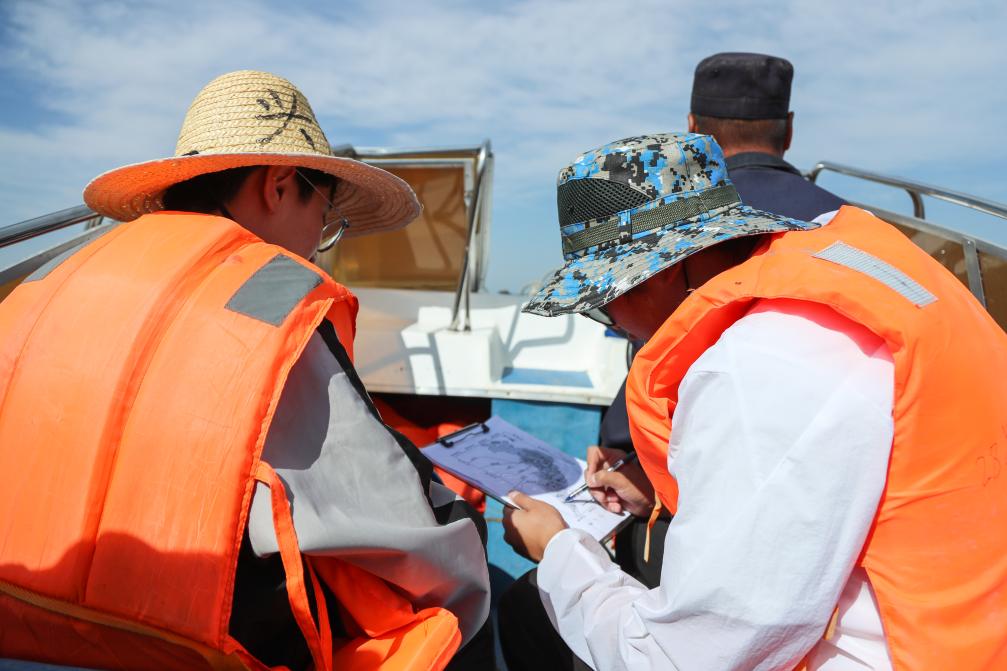 初秋的太阳仍然火辣,我们和同学们在湖面上“漂”了六七个小时,跟随他们一起跑遍每个点位,记录下乌梁素海湖水的每个数据。湖面上漂着的确让我难以适应,甚至有了晕船的反应,但正是这次宝贵的经历让我真正了解到有这样一群有理想有抱负的年轻人,正用日复一日的坚持为绿色中国的愿景添砖加瓦,往日那些学习到的理论知识也在和他们坐船环绕乌梁素海的时候得到实践。